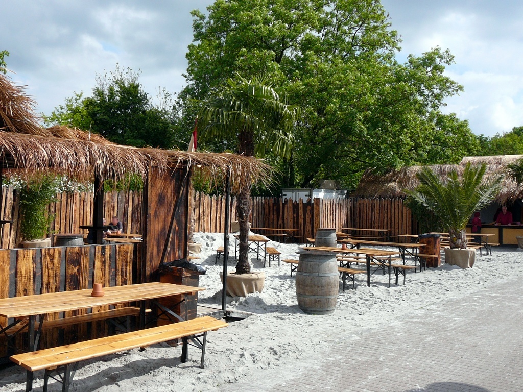 Die beiden Verkaufsbuden für den flüssigen und festen Bedarf sind optisch auch gelungen und auch eine angemessene Anzahl Palmen hat ihren Weg gefunden: