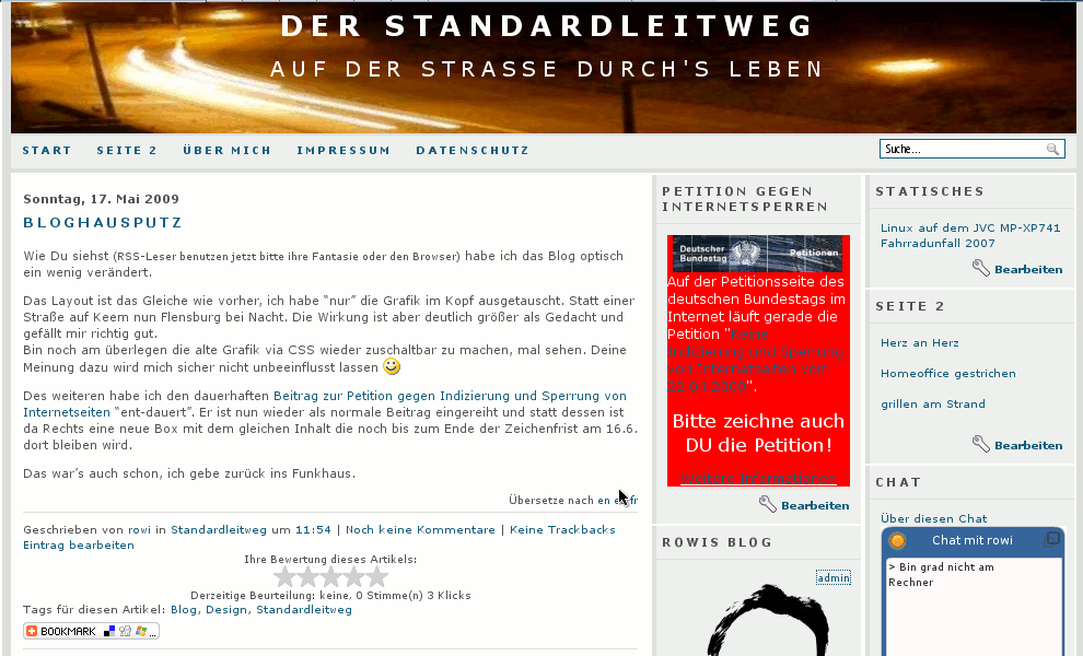 Das Layout ist das Gleiche wie vorher, ich habe “nur” die Grafik im Kopf ausgetauscht. Statt einer Straße auf Keem nun Flensburg bei Nacht. Die Wirkung ist aber deutlich größer als Gedacht und gefällt mir richtig gut.