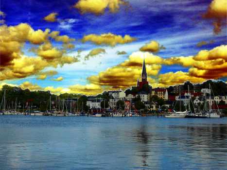 oder auch: Flensburguntergang reloaded: Dieses mal ohne störend sichtbare Trennlinie da ich das Bild im Ganzen bearbeten konnte. Etwas aufgehellt und anschliessend ‘Color enhance’ hat gereicht. Das Ausgangbild steht rechts: Das A