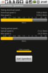 Nicht bieten kann ich eine Darstellung mit HSPA (HSDPA/HSUPA), also das UMTS-Equivalent zu EDGE, mangels Netzausbau. Das ist aber insofern verschmerzbar weil im Gegensatz zu den anderen Übertragungsmethoden die tatsächlich vom Netz gebotenen Übertragungsgeschwindigkeit stark schwankt. EDGE ist praktisch überall gleich schnell, HSDPA schwankt zwischen 1,2 und 7,2MBit/s1 je nach Netzausbau und Auslastung — Brutto wohlgemerkt. Das Samsung Galaxy könnte dann bisz u 7,2MBit/s im Downstream und 5,76MBit/s im Upstream übertragen — theoretisch, brutto und wenn das Netz mitspielt.