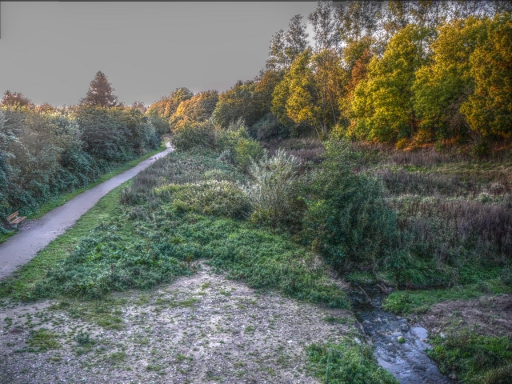 Die Scenerie ist übrigens das Lautrupsbachtal mitten in Flensburg, 150m von unserer Wohnung aufgenommen. Links davon liegt der Stadtteil Jürgensby, hinter den Bäumen rechts verläuft die Nordstraße, das ist die B199.