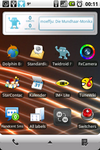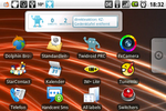 | Vom Hintergrundbild zum Homescreen selbst: Der normale Android Hauptbildschirm ist schon ganz nett, aber es gibt Verbesserungspotenzial. So führt er alle Anwendungen alphabetisch auf ohne Chance sie zu Gruppieren. So steht die Textverarbeitung neben der Navigationssoftware und zwischen zwei Spielen. Auch unterstützt er nur den Hochkant-Modus und legt sich nicht quer wenn man das Telefon dreht. All das bietet Advanced Launcher. Der Desktopersatz ist optisch sehr nah am Original, er bietet nur Zusatzfunktionen wie Querformat, optionale Ordner und eine ex- und importierbare Konfiguration. Wie das Original, nur besser. Auch verwaltet er das Anwendungsmenü etwas besser: mit dem normalen Launcher passiert es manchmal dass er die installierten Anwendungen neu einliest und das Menü neu aufbaut. Dann verschiebt sich einige Sekunden lang das Menü ständig mit jeder neu eingelesenen Anwendung — das nervt. Advanced Launcher liest natürlich auch ab und zu die Anwendungen neu ein, zeigt dann aber lieber ein paar Sekunden ein leeres Menü und zeigt es komplett an wenn es fertig ist. Das gefällt mir deutlich besser.Etwas weiter geht GDE: das Grundlayout ist wie immer gleich, GDE ist aber eher mit der HTC Oberfläche Sense vergleichbar. Unter dem Platz für 16 Icons wie im Original sind drei Schaltflächen die man frei belegen kann. So hat man z.B. das Telefon immer im Zugriff. Im Standarddesign auf dem Screenshot ist es eine durchgehende Leiste, es gibt im Markt aber diverse Alternativen die dann aussehen wie das erwähnte Sense oder Icons wie das iphone haben.