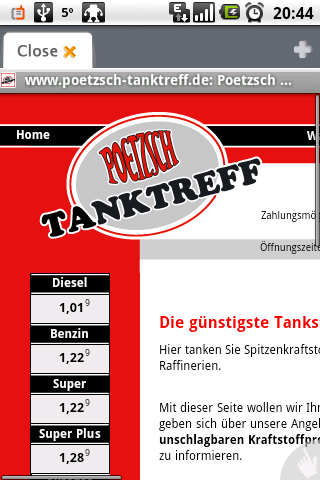 Leider ist der Poetzsch Tanktreff die einzige mir bekannte Tankstelle hier in der Gegend die das Internetangebot selbst pflegt. Die üblichen Preisvergleiche im Internet sind ja auf Beobachtungen der Nutzer angewiesen. Bei Poetzsch kann man aber sicher sein dass der Preis im Netz auch der Aktuelle ist.