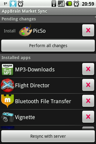 Andererseits werden auch alle Aktionen die man am Rechner geplant hat über die App synchronisiert, das bedeutet Programme die man installieren oder deinstallieren möchte. Für die eigentliche (De)installation wird dabei die normale Markt-Applikation aufgerufen. Das mag umständlich klingen weil man im Markt wie gewohnt die Installation und angeforderten Rechte bestätigen muss, ist aber letztlich ein Vorteil: Denn dadurch weiss der Markt auch von der Anwendung und man bekommt wie gewohnt die Updatemeldungen. So ist AppBrain wirklich eine Ergänzung und kein Ersatz was auf Dauer doch eher nervig ist.
