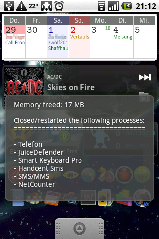 | Fast Reboot ist eine Art Reset Light. Er startet das Telefon nicht neu, auch nicht die Oberfläche oder alle Programme. Ob es wirklich einen Geschwindigkeitsvorteil o.ä. bringt konnte ich nicht feststellen, ich wüsste aber auch nicht wie ich das objektiv messen sollte. Aber wenn Du ein komisches Problem mit dem Telefon hast ist es vielleicht einen Versuch wert. Das Programm benötigt übrigens keine root Rechte, läuft also auf jedem Gerät. Genau genommen kann man die Programme also auch von hand mit jedem normalen Taskmanager beenden. Fast Reboot ist also primär ein Komfortgewinn. |