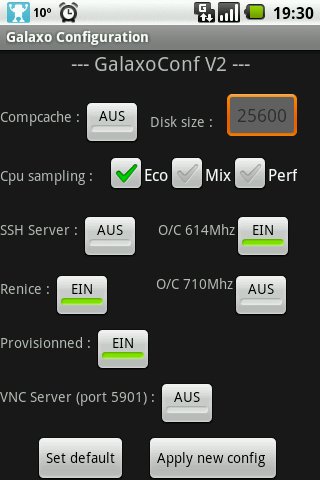 Ausserdem erstellt drakaz die “Galaxo” Firmwares für das Galaxy die so einiges an Verbesserungen bringen. drakaz ist quasi der Cyanogen des Galaxys
