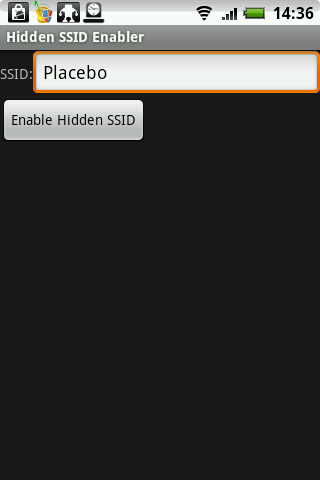 Was aber nicht wirklich funktioniert ist die Verbindung zu WLANs mit versteckter SSID. Das bringt zwar keine wirkliche Sicherheit, aber einige Leute stehen auf Placebos. Will man mit so einem Netzwerk verbinden muss man Android etwas auf die Sprünge helfen und dabei hilft der HiddenSSID Enabler. Hier trägt man die SSID ein und Android kann anschliessend auch mit versteckter SSID mit dem Netz verbinden. |