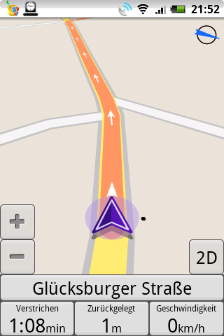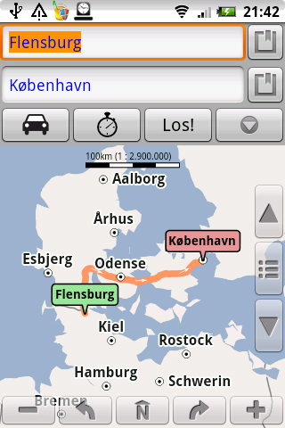 | Navdroyd ist eine günstige Navigationssoftware für Android. Für 5,94€ (4,99€ plus MWst.) erhält man eine komplette onboard (offline) Navigationssoftware. Das heisst das Kartenmaterial ist auf dem Gerät, keine Onlineverbindung ist erforderlich. Das Kartenmaterial soll alle 4-6 Wochen aktualisiert werden, man ist also immer auf dem neues Stand des OSM. Denn auch wenn das OSM Kartenmaterial hierzulande schon sehr genau ist erreicht es noch nicht die Qualität der Navteq oder TeleAtlas Karten. Leider fehlt ein Rückkanal mit dem man direkt aus der Software Strassen korrigieren oder ergänzen könnten. Der Anbieter verweist auf die normalen Mitarbeitsmöglichkeiten. Das mag man kritisch sehen dass eine kommerzielle Software die Karten nutzt aber keinen direkten Weg bietet die Karten zu verbessern, die Lizenz (CC-BY-SA) der OSM erlaubt dies aber sicher nicht ohne Grund. Die Navigation ist ansonsten durchaus brauchbar, wenn natürlich auch mit weniger Features als die großen Lösungen. Das liegt schon allein daran dass das OSM Material z.B. keine Informationen über die typische Verkehrsdichte enthält. Die Optik und Bedienung ist zweckmässig. In Deutschland werde ich wahrscheinlich CoPilot bevorzugen weil ich es schon habe und halt von den Funktionen her ein großes Navi ist, allerdings lebe ich Luftline nur 5km von Dänemark entfernt und dafür bräuchte ich die Europaversion die ich mir so sparen kann. Hätte ich noch keine andere Navigationssoftware würde mir NavDroyd aber ausreichen. Es tut seinen Dienst ohne Firlefanz und Ressourcenschonend und ist für diesen Preis unschlagbar. Die kostenlosen Navigationslösungen, inklusive dem auch auf den OSM Karten basierendem AndNav2, benötigen eine Onlineverbindung zum Betrieb. Das wird spätestens im Ausland sehr viel teurer und im Funkloch zumindest nervig wenn die Route angepasst werden muss. Nachtrag: |