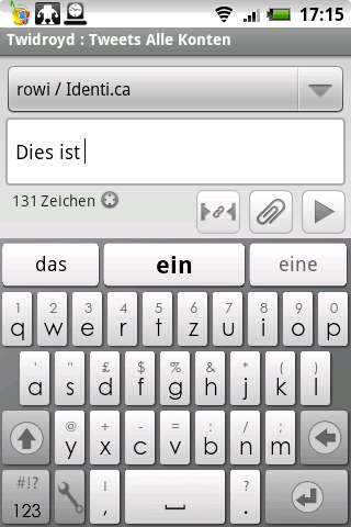 | Swiftkey ist eine neue Bildschirmtastatur für Android. Sie ist noch beta und kostenlos, ob sie danach etwas kostet weiss ich nicht. Es war in der Vergangenheit aber oft so dass diejenigen die die App schon vorher installiert hatten anschliessend die Vollversion nutzen konnten. Ein Versuch ist es Wert. Denn Swiftkey ist definitiv einen Test Wert. Zum einen ist sie deutlich hübscher als die Standardtastatur. Das ist zwar keine funktionelle Eigenschaft, aber das Auge isst schliesslich mit. Swiftkey arbeitet wie mittlerweile üblich mit einer Wörterbuchunterstützung um Tippfehler zu korrigieren, hat darüber hinaus aber ein weiteres Wörterbuchfeature das ich mir seit meinem Umstieg von Sony Ericsson Telefonen gewünscht habe: sie versucht das nächste Wort anhand der vergangenen Texte zu errraten. Denn im normalen Satzbau folgen auf bestimmte Worte oft die gleichen Worte, gerade Füll- und Bindeworte wie und, oder usw.. Dazu kommen die persönlichen Standardformulierungen. Swiftkey zeigt die wahrscheinlich folgenden Worte direkt an, für viele Formulierungen muss man nicht einmal mehr die Worte anfangen sndern tippt einfach den passenden Vorschlag an. |
