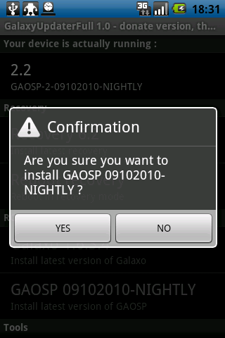 - GalaxyUpdater Donate — automatische Installation der freien Firmwares Galaxo und GAOSP für das Samsung I7500 Galaxy