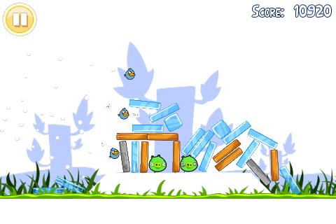 | Das Kultspiel Angry Birds gibt es nun auch für Android. Angry Birds ist ein lustiges Spielchen dass ich auch wieder als Physikspiel bezeichnen könnte. Tue ich aber nicht weil Du dann eh nicht wieter liest Die wütenden Vögel haben es auf Schweine abgesehen. Die Schweine sitzen in der Gegend rum und die Vögel greifen aus der Luft an. Ein direkter oder indirekter Treffer erledigt ein Schwein, für einige Elemente auf dem Spielfeld gibt es auch Bonuspunkte wenn man sie zerstört. Dabei fliegen die Vögel nicht wie man es kennt sondern sie katapultieren sich mit einer Schleuder in Richtung der Schweine. So fliegen sie eine schön ballistische Flugbahn. Es ist also im Grunde ein simples Spiel ala Shoot U! aber hübsch gemacht und Kult. Wenn Du das Spiel wie ich nicht im Market findest kannst Du es auch bei GetJar herunterladen. |
