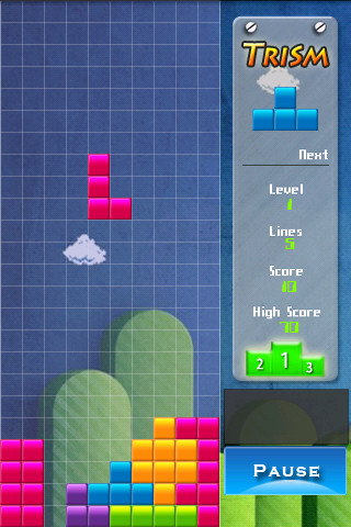 | Trism oder tetrís wie es im Market heisst ist offensichtlich ein Tetris Clone. Ein sehr guter. EA geht wohl gegen diese Clone vor, aber selbst wenn man die (mittlerweile nur noch) 2,99$ für das Original bezahlen wollte geht es nicht, die App ist nicht im deutschen (europäischen?) Market. Trism/Tetrís ist wie erwähnt ein guter Tetris Clone, sogar die Musik dürfte authentisch sein, der sich sowohl über das Steuerkreuz/Trackball oder den Touchscreen steuern lässt. Über den Touchscreen finde ich dabei sogar am bequemsten. Was gut ist für Geräte ohne seperates Steuerkreuz wie die Sony Ericsson Geräte. Ansonsten muss ich glaube ich zu Tetris nichts weiter erklären, oder? |