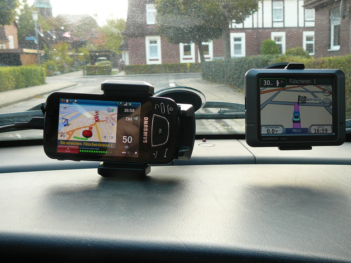 (Links Samsung Galaxy mit CoPilot Live; Rechts Garmin Nüvi)