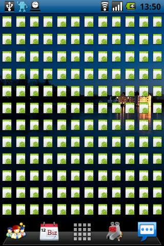 | Android bietet auf dem Homescreen 4×4 Felder Platz die man mit Programmicons, Shortcuts und Widgets frei belegen kann. Schon früh war mir das aber zu wenig und ich habe Widgets wie das More Icons Widget oder LaunchX benutzt die die Starter “in sich aufnehmen” und so mehr Icons auf dem Schirm unterbringen. In letzter Zeit bin ich davon aber wieder abgewichen denn auch Widgets sind letztlich Programme die Ressourcen verbrauchen. Vor allem der Arbeitsspeicher ist auf meinem Androiden der ersten Generation knapp. Das hat sich gestern geändert nachdem ich auf das Multicon Widget gestossen bin. Auch dieses Widget nimmt andere Starter in sich auf und stellt sie verkleinert dar. Der Unterschied: es ist im Normalfall nicht aktiv und verbraucht keine Ressourcen! Was dazu passt dass es im Normalfall ja auch nichts tut. Selbst wenn es sich nur sehr gut versteckt (es taucht selbst im ps nicht auf) verbraucht es keine Ressourcen, vor allem der Arbeitsspeicher wird nicht messbar belastet. Neben der Ressourcenfreundlichkeit hat es noch eine weitere Eigenschaft die ich bisher nur dort gesehen habe: Wie viele Icons dargestellt werden ist einstellbar. Im Normalfall zeigt es 4 Icons (2×2) pro “normalem” Feld an, das kann man aber in X wie Y Richtung getrennt auch auf 3×3 je Feld eingestellt werden (bezogen auf die Gesamtgröße des Widget das bis zu 1×4 groß ist). So bekommt man statt 16 bis zu 144(!) Icons auf dem Schirm. 4 Icons pro Feld lassen sich noch völlig problemlos antippen, für 9 muss man aber schon seine Finger anspitzen. Das könnte auf den Einstiegsgeräten mit resistiven Touchscreen aber anders aussehen wenn man einen Stylus benutzt. Ein paar Screenshots zur Verdeutlichung: | |||