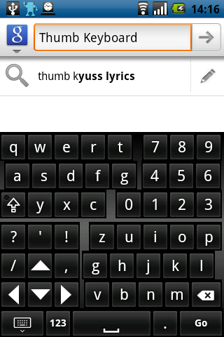 | Über eine sehr praktsche Bildschirmtastatur bin ich lezte Woche gestolpert: Thumb Keyboard ist genau das was der Name sagt: eine Tastatur für die Daumen. Die Version im Market ist kostenpflichtig, sie ist als “Spendenversion” gedacht. Kostenlos zum Download gibt es sie im Anwendungsthread bei XDA-Developers. | |||