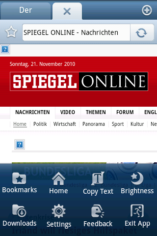 | MIUI Browser, Charming Browser, Miren Browser — dieser Browser hat viele Namen. Im Menü heisst er Miren Browser, also bleibe ich dabei. Der Browse fühlt sich gang gut an, die Standarddarstellung ist mir aber zu sehr eingezoomt. Der Text ist einwandfrei lesbar, das Layout stimmt auch, aber mir fehlt ein Gefühl für das Gesamtlayout der Seite. Besser als der Standardbrowser, auch das Blau gefällt mir, aber von xScope6 bringt er micht nicht weg… |