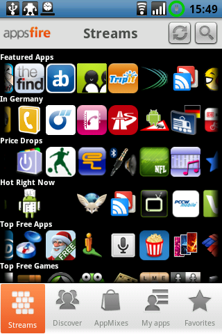 | Wer gern Programme ausprobiert und nicht nur hier liest (es soll ja Leute geben die auch ander Programmquellen als mich haben Ein Tipp auf ein Programmicon führt auf eine Detailseite von der aus man mit einem weiteren Fingertipp in den Market gelangt und das Programm installieren kann. Unter ‘Discover’ kann man gezielter suchen und sich Empfehlungen machen lassen und unter ‘AppMixes’ kann man App-Zusammenstellungen durchstöbern. Da würde mich mal interessieren wie man da reinkommt, ich hätte da auch etwas in Arbeit… Dass man sich Programme als Favorit markieren und via share/weitergeben Funktion weitergeben kann ist schon fast Standard bei Android Anwendungen. Die weitergeben Funktion ruft hier allerdings nicht die üblichen installierten Verdächtigen auf sondern bietet fest die Möglichkeiten ‘E-Mail’, ‘Kurznachricht’ und ‘QR-Code’. Wer Programme such sollte sich dieses Programm mal ansehen. Natürlich nur um die Zeit bis zur nächsten WAAV zu überbrücken |