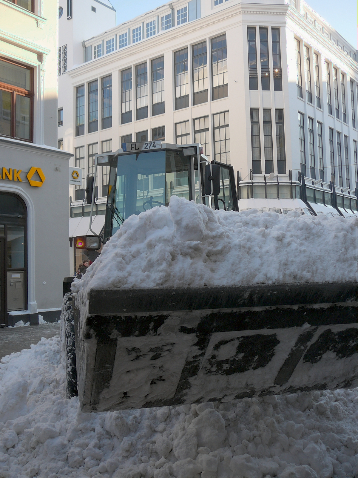 Das TBZ setzt etwas größere Schneeschieber ein um die Innenstadt mit Weihnachtsmarkt begehbar zu halten: