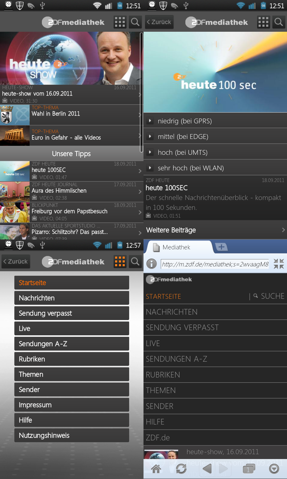 | Vom ZDF kommt nach der umstrittenen Tagesschau App (vorgestellt in Folge 59) eine zweite Öffentlich-Rechtliche Anwendung für Android. Sie dient dem bequemen Zugriff auf die Inhalte der ZDF Mediathek, also auf Videos. Und auch wenn gerade diese in der Taggesschau App nicht beanstandet wurden scheint es fast so als wollte das ZDF jeder Kritik von den Privatmedien aus dem Weg gehen und hat die App so schlecht programmiert dass sie in der derzeitigen Form nur mit starken Nerven zu benutzen ist. Hat man das Video gesehen und will zurück kann man so viel man will auf die ‘Zurück’ Taste drücken wie man will, sie funktioniert nicht. Auch dies ist eine gedankenlose Portierung vom iphone man bedient sie rein über den Bildschirm. Da kommt man sich fast amputiert vor. Eine Ausnahme ist die Menütaste: Sie fungiert hier aber nicht als Kontextmenü sondern öffnet wie das quadratische 9-Punkte-Symbol oben ein Programmmenü in dem man die Sendungen auch nach Themen, Rubrik, Sender usw., sogar Live-Sendungen, auswählen kann. An dieser Stelle gibt es zwar auch ein ‘zurück’ auf dem Bildschirm, aber er ist deaktiviert, auch die Hardwaretaste funktioniert natürlich nicht, man muss wieder auf das Quadrat oder die Menü-Taste drücken. Man hat also diverse Möglichkeiten die gewünschte Sendung zu finden. Weiss man aber nun nicht wo sich der “Elektrische Reporter“ versteckt kann man ihn auch suchen. Oder auch nicht. Tippt man auf das Lupensymbol öffnet sich ein Suchfenster, aber das war es auch schon. Keine Tastatur. Auch wenn man in das Eingabefeld tippt passiert nichts. Und wehe, man versucht sich an der normalen Android-Mechanismus indem man lange auf die Menütaste drückt: was überall dafür sorgt dass die Tastatur eingeblendet wird sorg hier nur dafür, dass das normale Programmmenü aufgerufen wird. Mit dem Unterschied, dass das Menüicon oben nicht als aktiv eingefärbt wird. Man sieht das Menü, kann aber nichts auswählen und kommt auch nicht wieder raus. Das einzige was dann noch funktioniert ist ein Druck auf die Home-Taste um das Programm zu verlassen. Es ist dann aber noch aktiv, ruft man sie wieder auf landet man in der gleichen Sackgasse. Überhaupt lässt sich das Programm nicht beenden. Das ist eine der wenigen Gelegenheiten wo ein Taskkiller sinnvoll ist In der aktuellen Version 1.0 ist die App schlichtweg großer Mist, setzt euch lieber einen Bookmark auf das Mobilportal unter m.zdf.de, das funktioniert wenigstens |