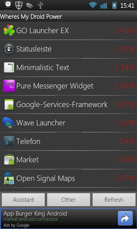 Wheres My Droid Power — listet stromverbrauchende Apps auf