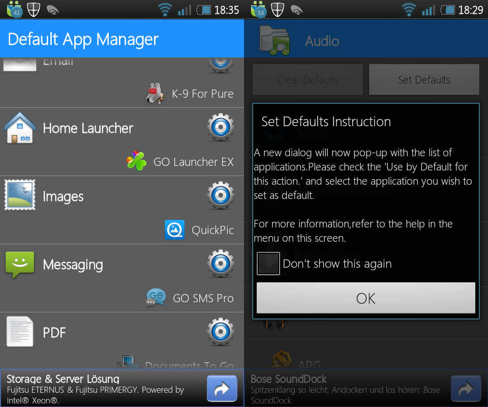 Default App Manager — Verwaltung der Standardanwendungen für bestimmte Aktionen