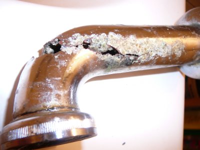 Das musste ja vorhin noch passieren: Ich will nur kurz das Abflussrohr unter’m Badezimmerwaschbecken abmachen um da ‘nen Regal (bzw. dessen Verstärkungskreuz) dahinter zu schieben und was passiert? Das Rohr das hinter dem Bogen kommt bricht. Einfach so, ohne großartige Gewalteinwirkung.