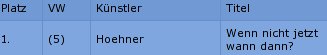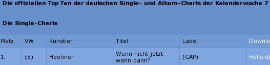 Übrigens ist der WM-Song “Wenn nicht jetzt wann dann” von den Höhnern in den aktuellen Charts auf Platz 1!