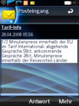 Besser ginge es nur, wenn man nur die Info für den eigenen Tarif bekäme, E-Plus schickt nämlich zwei Nachrichten, einmal für den normalen Tarif “international” und dann für den neuen “Reisevorteil”. Beim Screenshot nicht über die Zeit wundern, die Uhr beim E-Plus-Server geht anscheinend 12 Stunden vor ![]()
