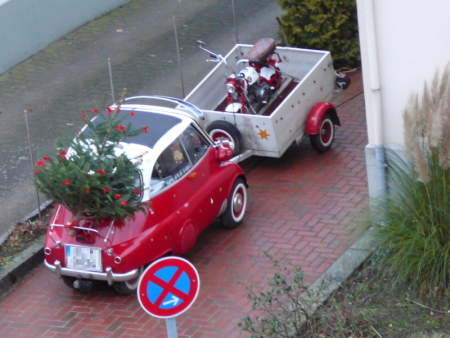 Der Flensburger Weihnachtsmann mit seinem Auto, einer Isetta.