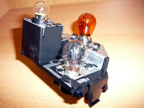 Bei der Gelegenheit habe ich auch festgestellt, dass die Rücklichter beidseitig redundant ausgelegt sind, neben einer kombinierten P21 mit Rück- und Bremslicht steckt noch eine P5 zur Sicherheit damit auch bei Ausfall einer Lampe der Wagen noch leuchtet.