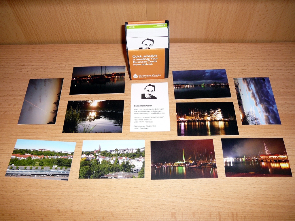 Urteil: Super! Die Qualität ist fantastisch, kein Vergleich mit den doch recht normalen (aber nicht schlechten!) Vistaprint-Karten. Deutlich festeres Material und erstklassige Druckqualität.