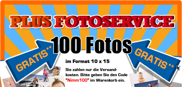 Tipp für alle die ihre Bilder lieber als Abzug in der Hand haben: Bis 28.2. gibt es bei Plus 100 Fotos fast Gratis. Nur die Versandkosten fallen an.