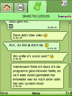 SMS eingeht. Man ist also nicht im Tal der Ahnungslosen nur weil man vergessen hat das Programm zu starten. Vorraussetzung ist natürlich, dass beide das Programm installiert haben, das Programm fragt aber vor absenden der initialen Kurznachricht, ob der Empfänger das Programm installiert hat, hier gibt es nicht nur “ja” und “nein” zur Auswahl sondern auch “ich weiss es nicht”.