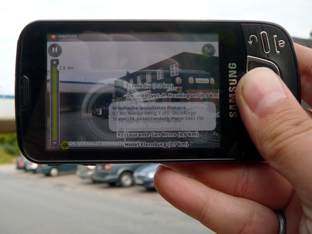 Wiedemauchsei, neben Wikitude gibt es nun eine weitere AR-Anwendung für Android: Layar. Wie der Name andeutet arbeitet Layar mit Layern, also Ebenen. Diese Ebenen legen fest welche Informationen in das Kamerabild eingeblendet werden. Es gibt Layer mit Hotels von Greenbookings, von Brightkite mit den Usern in der Nähe, von Mazda mit den nächsten Händlern usw.. Und obwohl mit Qype und Wikipedia auch die gleichen Quellen wie Wikitude sie nutzt zur Verfügung stehen findet Layar zumindest noch wesentlich weniger Punkte der Umgebung. Da ist Wikitude noch deutlich besser davor — zumindest in Flensburg. Da Wikitude hier aber auch abseits der Innenstadt verdammt viel findet nehme ich das als Massstab. Sylt oder Berlin sieht vielleicht anders aus, ist aber irgendwie auch kein Massstab für die Breite.