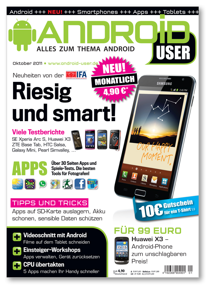 Der Android User erscheint ab Oktober monatlich; er deckt all die Details zum Thema Android ab, die in den herkömmlichen Magazinen fehlen.