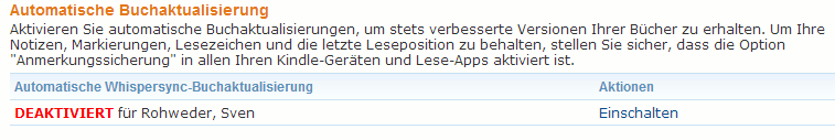 Damit werden die Bücher nun automatisch aktualisiert wenn es eine überarbeitete Version gibt. Notizen, Markierungen und Lesezeichen sollen dabei erhalten bleiben, dazu muss aber die Synchronisation selbiger aktiviert sein.