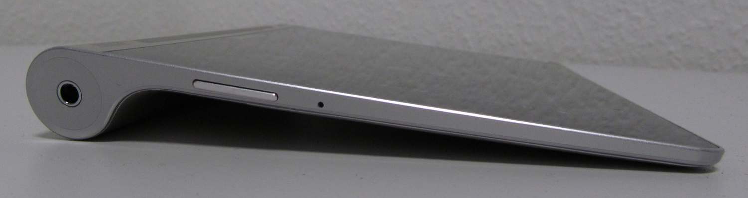 Nun habe ausgerechnet ich hier aber kein Nexus liegen. Der Grund ist, dass das Yoga nicht einfach nur ein Ideal-Standard Rechteck ist sondern sich durch seine Bauform absetzt. Während sich die Galaxy Note Geräte durch den Digitzer-Stift abheben hat das Yoga eine ungewöhnliche Rolle auf einer der langen Seiten eine ca. 2cm dicke Rolle, die Hauptfläche mit dem Display ist dafür nur 5mm dünn.