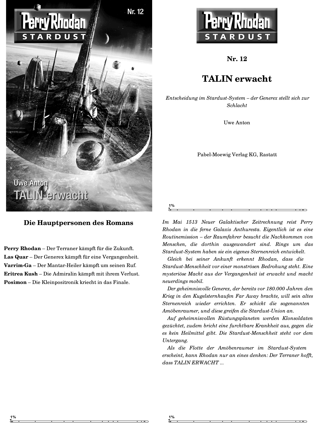 TALIN nun erwacht ist dürfte auch für die Handlung in der Erstauflage eine Rolle spielen und ich wette es ist kein Zufall, dass die Handlung dort sich gerade jetzt um ES dreht. Und die Erstauflage wird auch generell wieder Bezug auf die Stadust-Menschheit nehmen.