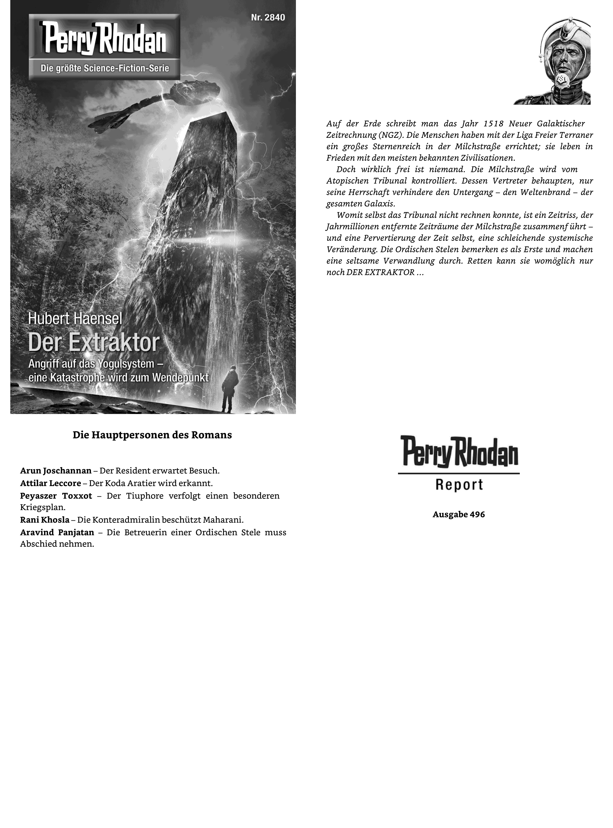 Der Leiter des Terranischen Liga Dienstes Attilar Leccore reist nach Maharani, dem Sitz der Liga Freier Terraner um dort die durch die in den vorigen Bänden thematisierte Dyschronale Drift ausgelöste “Krankheit” der Ordischen Steele(n) zu untersuchen.