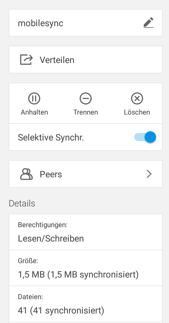 Die nächste Stufe folgte schnell, Zusatzprogramme sorgten für die automatische Synchronisation eines bestimmten Verzeichnisses in dem ich alle Dateien speichere die ich auch auf dem Smartphone aktuell haben will.