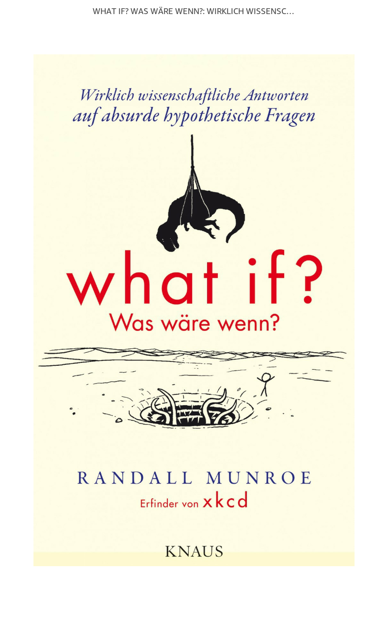 In der dritten und letzten Phase des Kindle Winter-Deals finde ich gleich eine Handvoll erwähnenswerter Bücher. Sie sind noch bis zum 12.01.2018 im Angebot: Sofort gekauft habe ich What if? Was wäre wenn?: Wirklich wissenschaftliche Antworten auf absurde hypothetische Fragen von Randall Munroe, bekannt von seinen XKCD Comics. Vom Jetpack aus Maschinengewehren über eine LEGO-Brücke über den Atlantik bis hin zur Frage, wann Facebook mehr Profile von toten als Lebendigen enthält. Ein großer Spass!