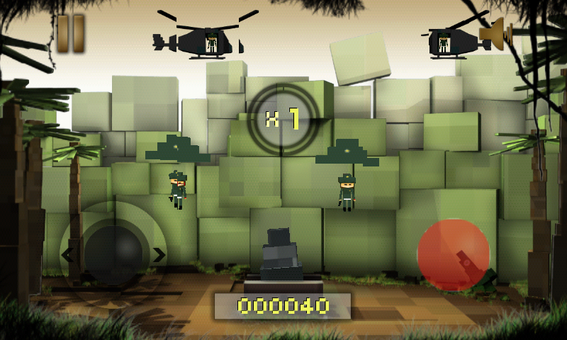 | Parashoot! ist ein Gesteuert wird die Kanone mit einem virtuellem Joystick mit dem man sie nach Links und Rechts zielen lassen kann, auf der rechten Seite ist der Feuerknopf. Munition hat man unbegrenzt, allerdings heizt sich die Kanone auf, so dass man immer wieder Feuerpausen machen muss. Die Gegner machen allerdings keine Pause… Das Spiel hat eine sehr grobpixelige Grafik, das ist aber nur Show, unter der Haube scheint es sogar auf 3D Bibliotheken aufzubauen. Kein großer Tiefgang, aber eine knifflige Beschäftigung für zwischendurch. |