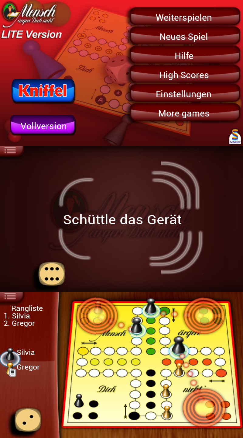 | Das Spielprinzip von Mensch ärgere Dich nicht! muss ich wohl niemanden erklären. Fragen kann man sich natürlich warum man ein Würfelspiel virtuell auf dem Telefon oder Tablet spielen sollte, aber wer unbedingt eine Runde spielen will und keine Mitstreiter hat bekommt hier Computergegner und auch im Auto, Zug oder gar Flugzeug ist das Brettspiel eher unpraktisch. Und das Spiel hat die beste Würfelumsetzung die ich bisher gesehen habe: Man würfelt nämlich tatsächlich, indem man das Gerät schüttelt, der virtuelle Würfel rollt dabei im Display und prallt von den Wänden ab, es gibt dabei sogar noch ein haptisches Feedback über den Vibrationsalarm (abschaltbar). Die Grafik ist durchaus gelungen und dreht dreidimensional zum Spieler der dran ist. Die kostenlose Version erlaubt das Spiel gegen einen Computergegner, die Vollversion erlaubt 4 Spieler die wahlweise ein Mensch oder Computer sein können. An sich ein gelungenes Spiel für Freunde von Mensch ärgere Dich nicht, beim Spiel gegen den Computer stört aber dass dessen Zug viel zu schnell abgearbeitet wird. Spielfeldanimation zum Gegner, Würfeln, ziehen und Animation zurück um Menschen dauert nur 1-2 Sekunden so dass man jedes Mal ersteinmal gucken muss was überhaupt passiert ist. Das hätte man gern etwas verzögern dürfen, bzw. müssen. Bei meinen Spielen hatte ich auch immer das Gefühl dass die KI schummelt. Nicht damit sie gewinnt, sondern damit der Mensch gewinnt. Zumindest kommt es mir immer so vor als wenn ich Anfangs ständig rausgeschmissen werde und der künstliche Gegner zum Schluss immer dauerhaftes Würfelpech hat. |