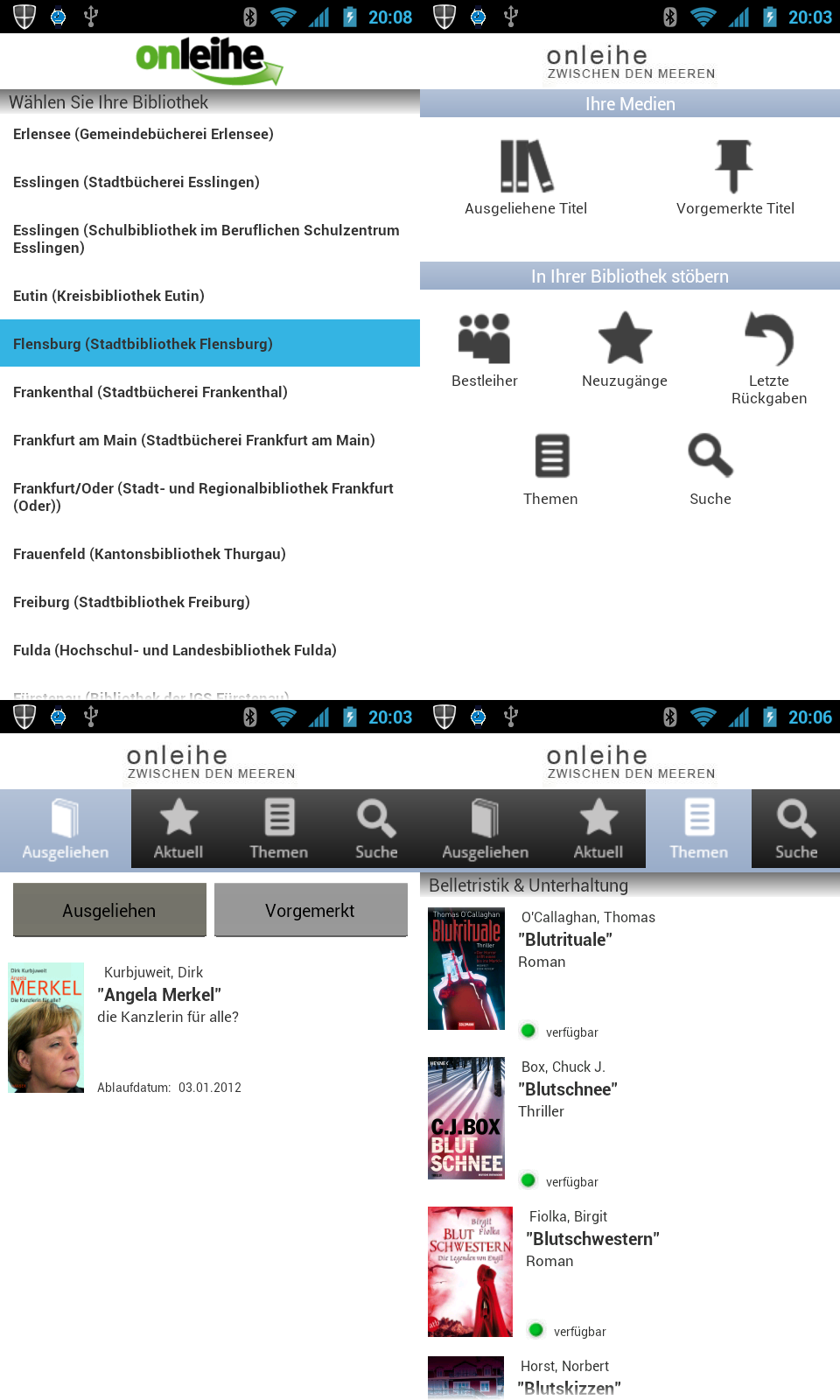 | Mit Androiden kann man ganz passabel EBooks lesen, man braucht nur Lesestoff. Es gibt diverse Quellen für freie E-Bücher, man kann sie kaufen, oder ausleihen. Wie aus einer Bücherei. Genau wie aus der Bücherei, nämlich aus der Bücherei. Über den Dienst Onleihe bieten über 10.000 Büchereien auch online Bücher an. Und über die Android-App Onleihe kann man den Bestand auch vom Androiden aus nutzen. Dazu trägt man in der App seine Zugangsdaten die man von seiner Bücherei bekommen hat (bei mir ist es die Nummer beim Strichcode der Mitgliedskarte sowie ein bestimmtes Passwort) und kann ab sofort im Bestand stöbern. Wie in der echten Bücherei kann jedes Buch nur einmal ausgeliehen werden und wie in der offline Version kann man verliehene Bücher vorbestellen, direkt in der App. Ein Buch leiht man einfach per Fingertipp aus, es kommt als DRM-geschütztes ebook auf das Telefon. Das DRM sorgt dafür dass das Buch nach Ende der Leihfrist nicht mehr gelesen werden kann. Zum lesen verwendet Onleihe den Ebook-reader Bluefire, diesen muss man installieren und bei Adobes DRM anmelden. Ausgeliehene Bücher erscheinen unter “Ausgeliehene Titel” und von dort aus wird der Bluefire Reader gestartet. Beim ersten Aufruf wird die Ausleihe authorisiert, anschliessend kann man den BlueFire Reader auch direkt starten, die ausgeliehenen Bücher erscheinen in seiner Bibliothek und können während der Ausleihzeit gelesen werden. Ansonsten kann man in Onleihe den Buchbestand nach den meist ausgeliehen Büchern, Neuzugängen, thematisch sortiert oder nach einem Suchbegriff durchstöbern bzw. suchen. Ich bin zwar kein Freund von DRM, dies ist aber einer der Anwendungsfälle bei denen es IMHO sinnvoll ist. Für die Zukunft würde ich mir noch wünschen dass die ebooks nicht wie Papierbücher in der Anzahl beschränkt ausgeliehen werden können, das ist aber nichts was die Onleihe App zu verantworten hat. |