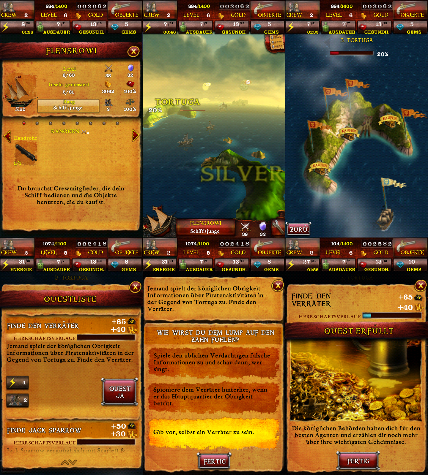| Pirates of the Caribbean, der Originaltitel der Filmreihe “Fluch der Karibik” ist das offizielle Spiel zum Film, direkt von Disney. Wer jetzt an ein Actionspiel denkt sollte nicht weiter lesen. Pirates of the Caribbean ist ein Management-Spiel ala Mafia Wars. Kanonen sieht man bei einigen Aktionen als Standbild, die einzigen Animationen gibt es auf dem Meer wenn man sich seine Insel aussucht. Das war’s. Ansonsten ist das Spiel sehr trocken, Crew anheuern, bestimmte Aufgaben erfüllen — die daraus bestehen sie auszuwählen und ggf. eine der Vorraussetzungen zu kaufen. Besonders aufregend ist das Ganze nicht, immerhin wird man in das Spiel eingeführt. Dabei wird allerdings auch nicht viel erklärt, man bekommt Anweisungen ala ‘Du brachst eine Crew, klicke hier’. Insgesamt finde ich es ziemlich lahm, ich erwähne es hier nur weil die Geschmäcker ja verschieden sind und es dem ein oder anderen vielleicht den Download spart, der bekannte Name verführt ja doch. |