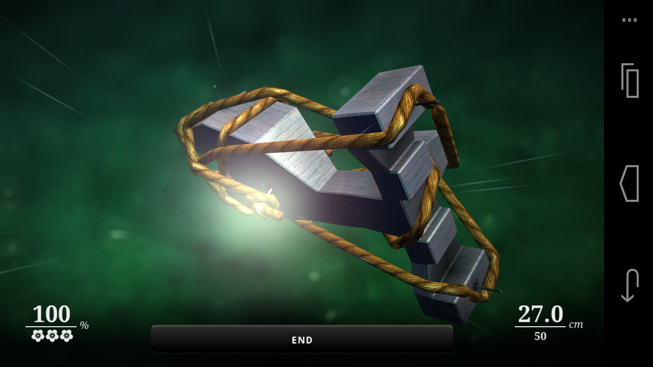 | Zen Bound 2 ist ein 3D Tüftelspiel mit einem Spielprinzip das ich so noch nicht gesehen habe. Es ist eigentlich ganz simpel: Eine Holzfigur schwebt im Raum und an ihr ist ein Seil fest gemacht. Durch drehen der Figur wickelt man das Seil um die Figur und an bestimmten Stellen (Seilspannung, Farbbomben an Nägeln in der Figur oder im Seil) wird die Figur mit Farbe bespritzt. Begleitet wird das Spiel von meditativer asiatischer Musik die wunderbar dazu passt. Zen Bound 2 ist eine sehr schöne Mischung aus Geschicklichkeits- und Tüftelspiel denn die Figuren haben natürlich ihre eigene Form mit Vorsprüngen und Einkerbungen an denen man das Seil führen kann. Das erfordert je nach Figur eine Menge Geschicklichkeit. Hier auch noch das Video zum Spiel: Das Spiel läuft sowohl auf dem Desire als auch dem Galaxy Nexus flüssig, im direkten Vergleich ist die Animation des Levelbaums auf dem Nexus flüssiger, aber im Spiel ist das Desire genauso flüssig. Downloadgröße: 162,5MB; das Spiel installiert sich auf die SD-Karte. Testgerät: HTC Desire, Samsung Galaxy Nexus |