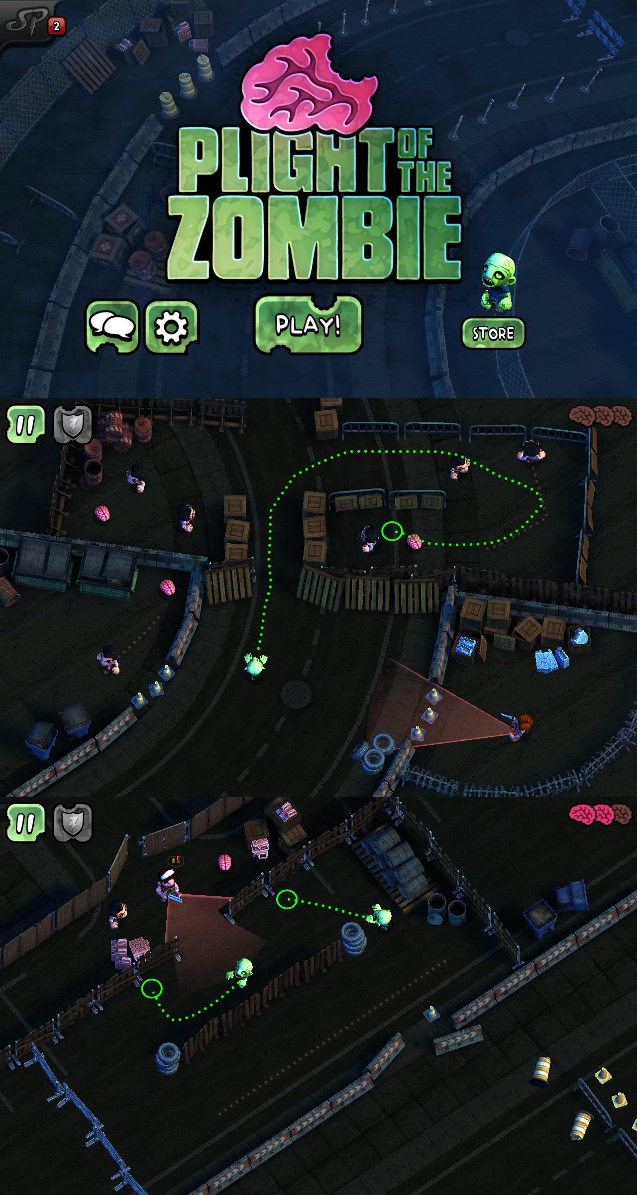 In Plight of the Zombie ist es Deine Aufgabe, die Zombies zum Essen zu führen. Es ist ein Gelegenheitsspiel mit 30 (kostenlosen) Leveln in denen man den Zombies Laufwege auf den Bildschirm mal um die Gehirne zu erreichen. Berühren sie unterwegs Menschen werden auch diese zum Zombie und können gesteuert werden, Menschen mit Waffen sollte man aber meiden bzw. nicht in Blickrichtung anlaufen sondern besser von hinten.