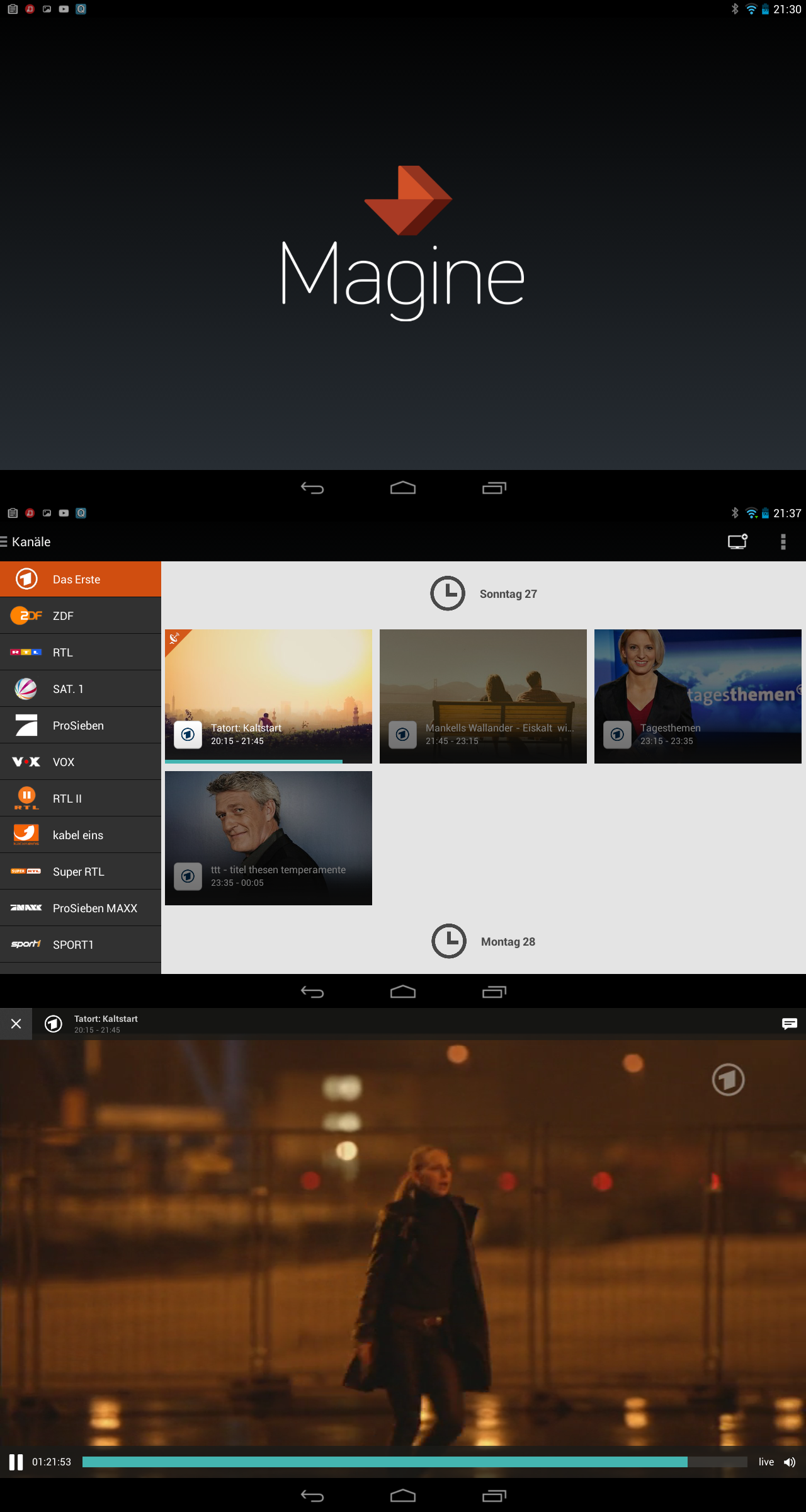 Vor zwei Wochen ist Magine TV in Deutschland gestartet, mit dem Programm des schwedischen Anbieters kann man (deutsche) Fernsehsender über das Internet auf Androiden sehen.