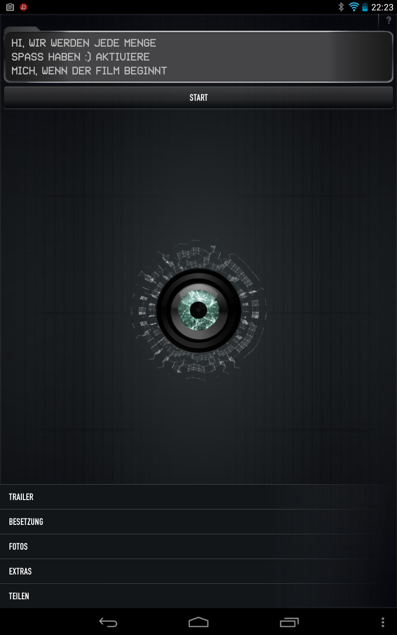 Das Besondere: Zum Film gibt es eine eigene App die auf den Film reagieren und diesen passend ergänzen soll. Die App gibt es für Android und ios und arbeitet komplett offline, sie reagiert auf den Filmton.