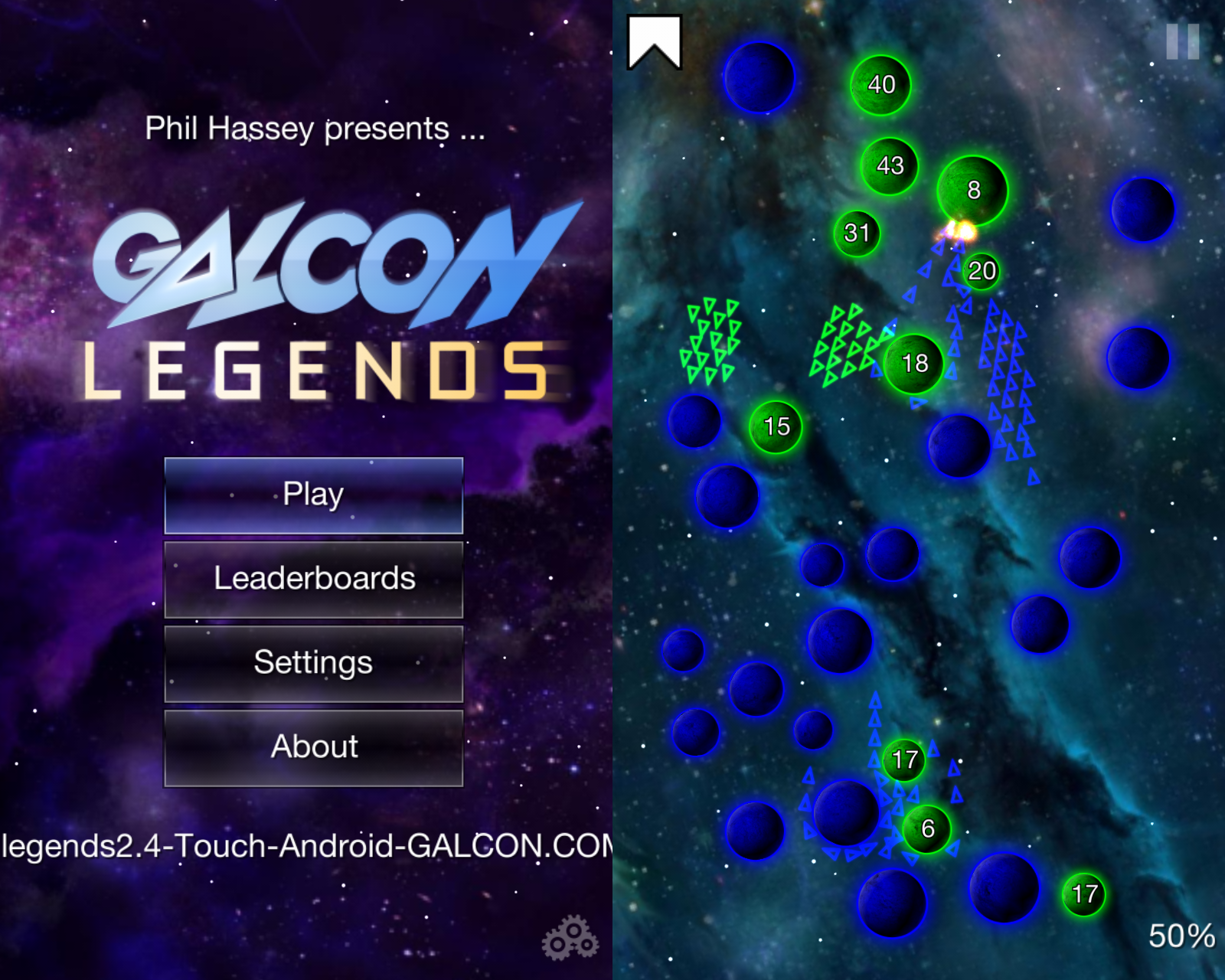 Die beiden Galcon Spiele sind sich sehr ähnlich, beiden liegt das selbe einfache Spielkonzept zu Grunde. Das Spielprinzip ist gleich mit Archipelago das ich noch bevor ich mit der WAAV angefangen habe vor 4,5 Jahren in Spielen mit dem Androiden vorgestellt hatte.